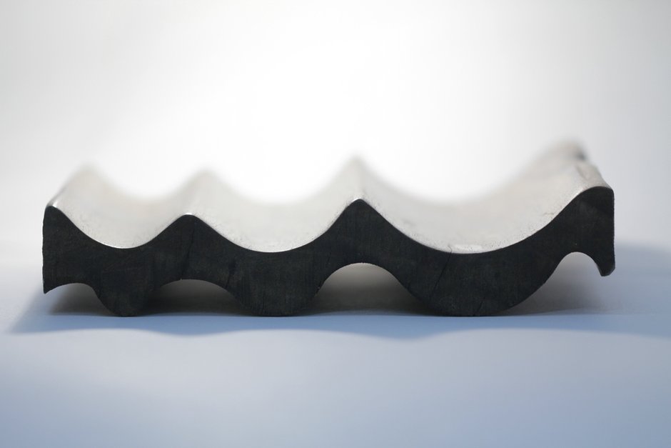 Bei dieser Ausführung wurden die Kanten nicht geschliffen, sondern alle Bearbeitungsspuren belassen - so hat man einen außergewöhnlichen Kontrast zu den polierten Ablageflächen.